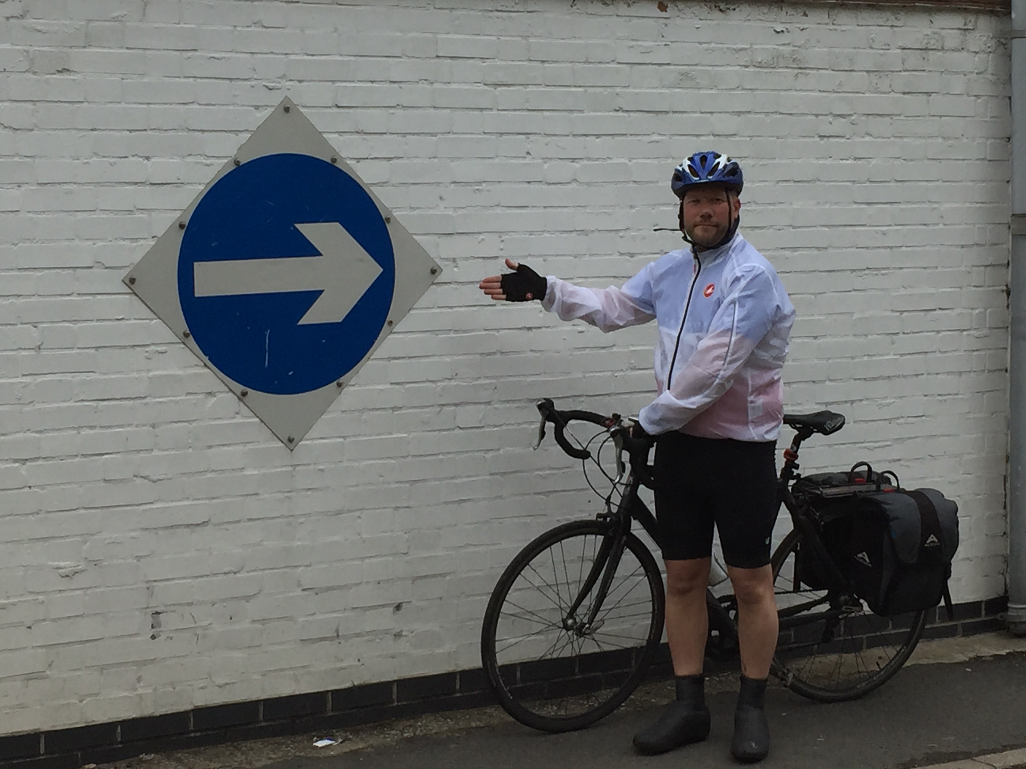 The following morning we leave BNE by the A-141, riding straight into the torrential downpour predicted by Blackwell, who’d seen the weather forecast on Countryfile. It’s no fun – all white vans speeding past, and overshoes filling up with lukewarm rainwater. After we bag Diss, things start looking up, with the rain easing off, and the roads becoming more bucolic – you can barely move for signs promising asparagus next left.