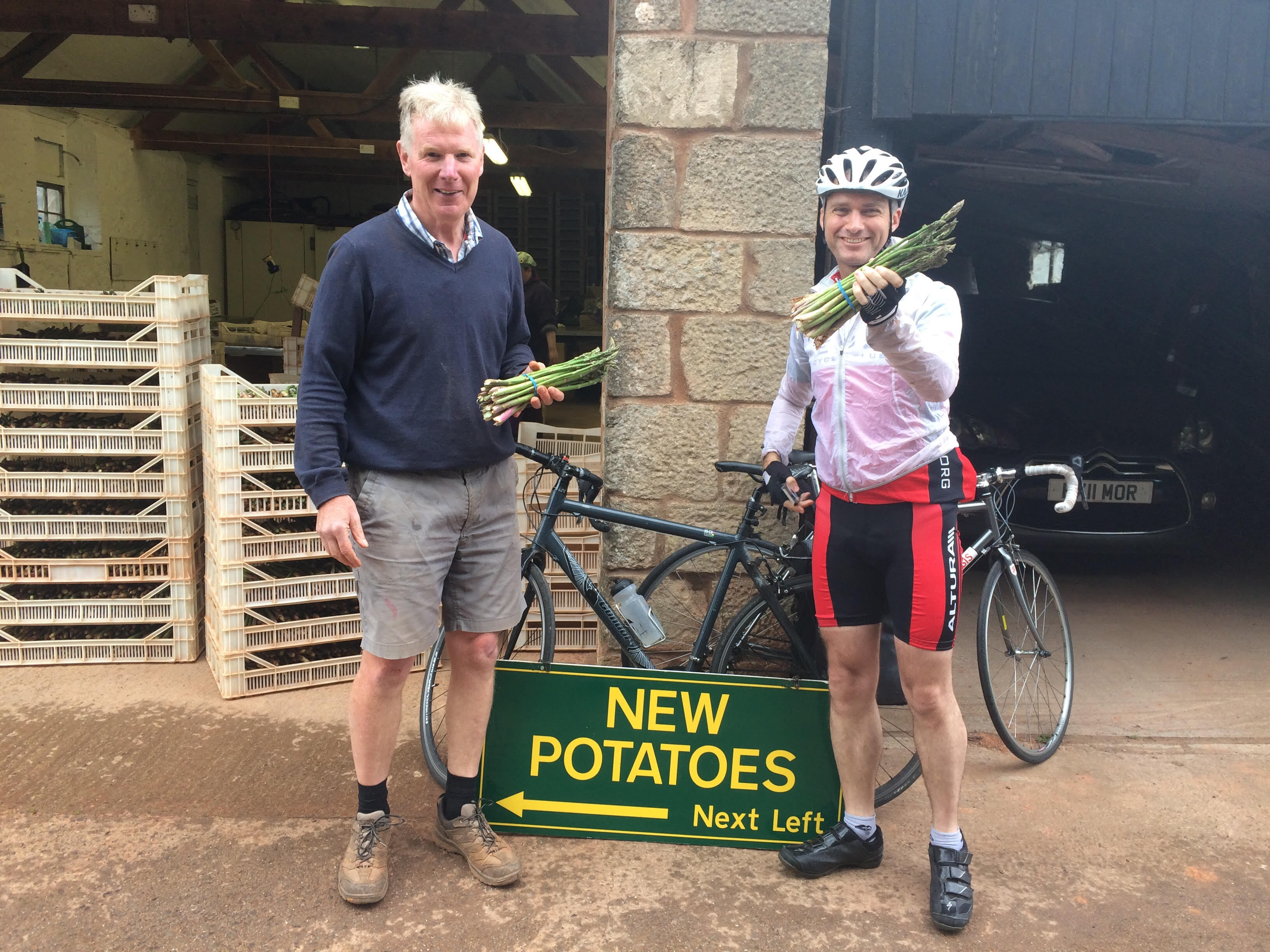 Today’s leg also offers something extra-special. A few years ago, asparagus farmer Stephen Crossman contacted us making a strong case that signs for some of his merchandise inspired some of the lyrics Asparagus Next Left. Not only that, but he’s offered to meet us at his farm just past the Quantocks for some cycling and asparagus-sign-related japery. Needless to say we’re very excited about the possibility of encountering a living character from a Half Man Half Biscuit song for the first time.